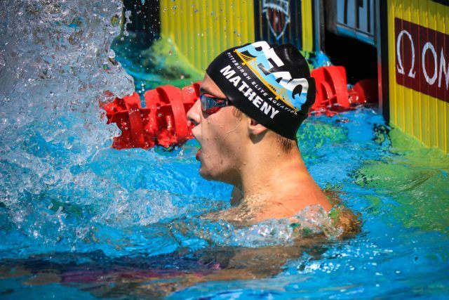 Matheny’s previous best time of 1:52.12 ranked him 5th all-time in the age group. That swim was done at the Winter Juniors – East Championships last December.