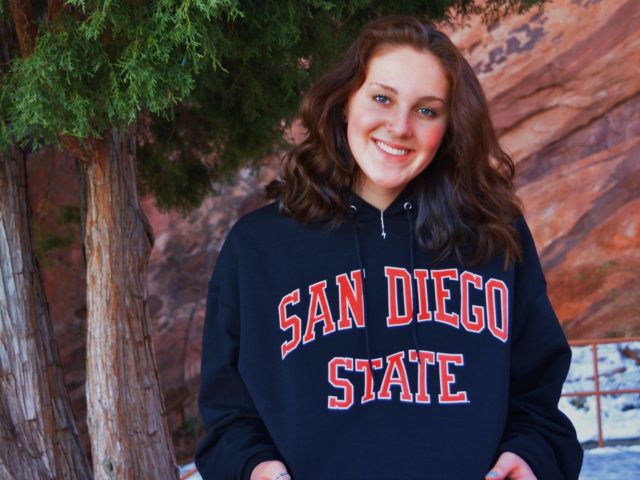 “It is with so much excitement and gratitude that I announce my verbal commitment to swim & study at San Diego State University!! I can’t thank my family, friends, coaches & teammates enough for their endless support and encouragement over the years!! GO AZTECS!!!!